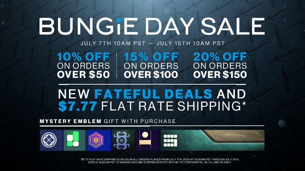 The Bungie Store’s annual Bungie Day Sale returns July 7–15, featuring new ways to save, new Fateful Deals on popular merchandise, and the re-launch of classic Retired Rewards. This year’s sale is the perfect opportunity for Destiny fans to gear up and round out their collections with amazing collectibles.
